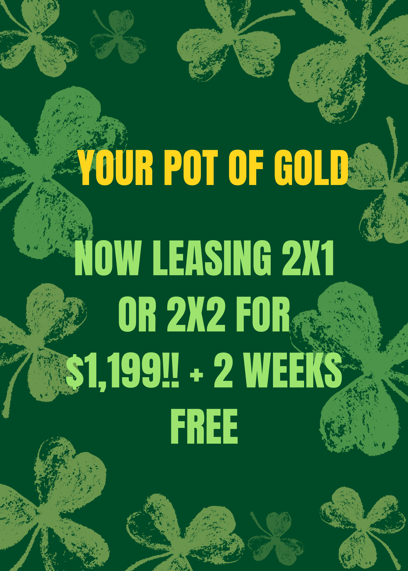GET LUCKY AT PARK ROYAL - 2 WEEKS FREE ON YOUR MOVE IN COSTS!!🍀✨Specials